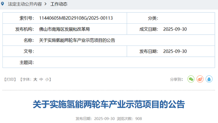 广东佛山南海实施氢能两轮车产业示范项目