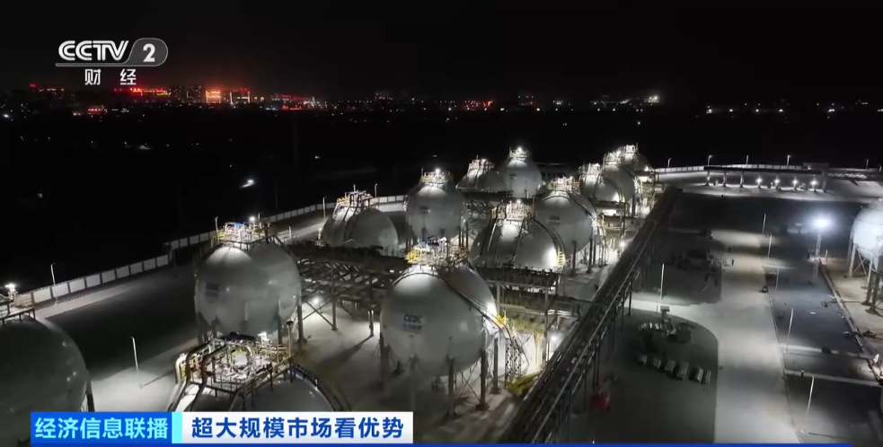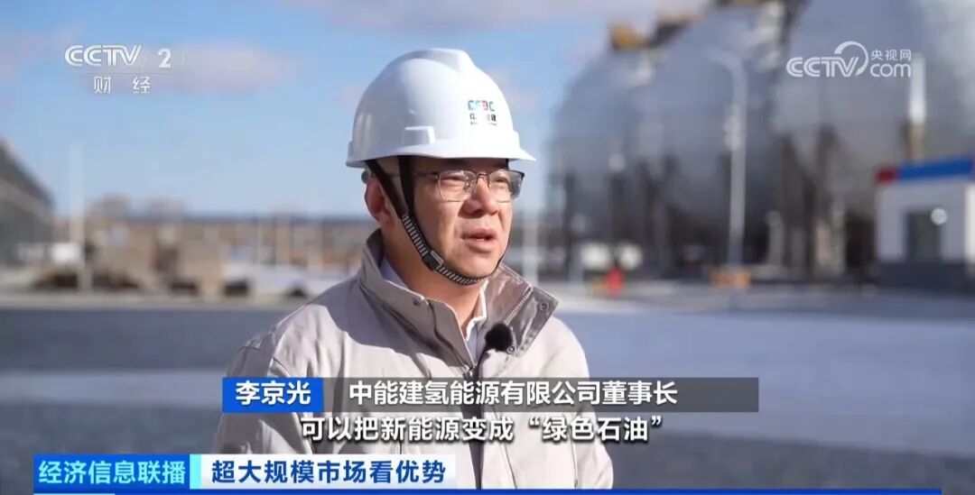 总台央视记者 平凡:吉林松原绿色氢氨醇项目是全球最大的绿色氢氨醇一体化项目,也是目前全球规模最大的“绿色石油”生产基地。上游的风电光伏在这里被加工成绿氨,整个项目预计在今年年底前投产,所产出的第一批绿氨将作为燃料应用在国际航运领域。