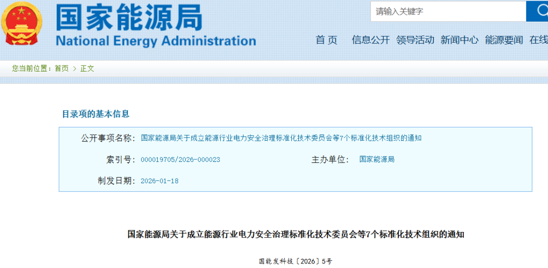 为贯彻落实《中华人民共和国能源法》,加强能源领域标准组织建设,经研究,同意成立能源行业电力安全治理标准化技术委员会等7个标准化技术组织。